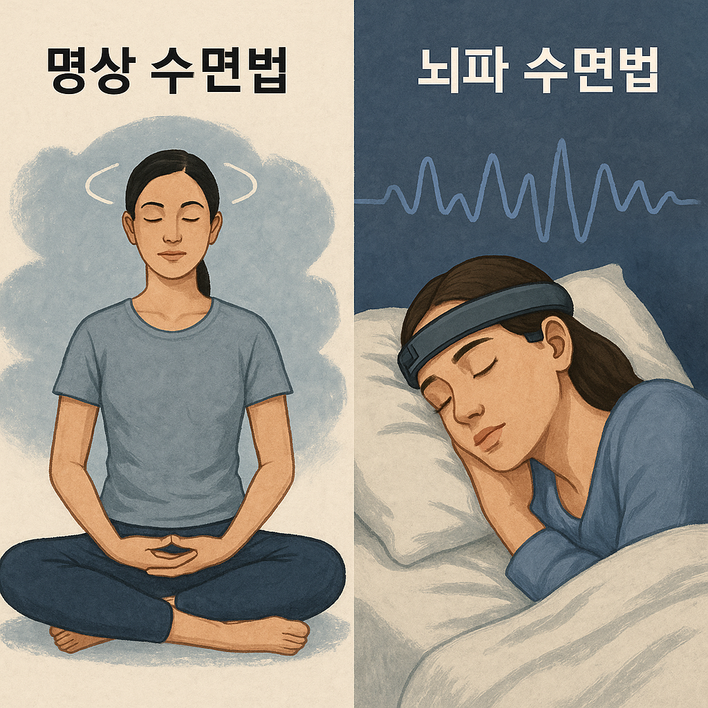 수면의 질을 높이기 위한 방법으로 '명상 수면법'과 '뇌파 수면법'이 많은 사람들의 주목을 받고 있습니다. 두 방식은 모두 자연스러운 이완과 심신 안정이라는 공통점을 지니고 있지만, 접근 방식과 기술적 기반은 상당히 다릅니다. 이번글에서는 명상 수면법과 뇌파 수면법의 개념, 작용 원리, 효과를 중심으로 비교해보고, 독자 여러분의 수면 개선에 실질적으로 도움이 될 수 있는 정보를 제공하고자 합니다.